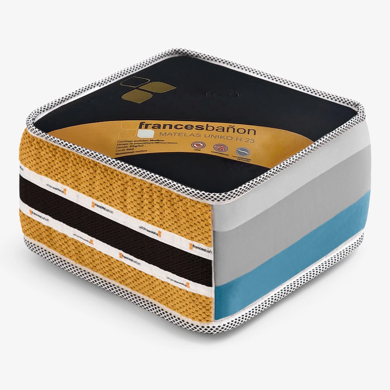 • Bicolour border (yellow fabric 100% polyester, 3D 100% breathable polyester).