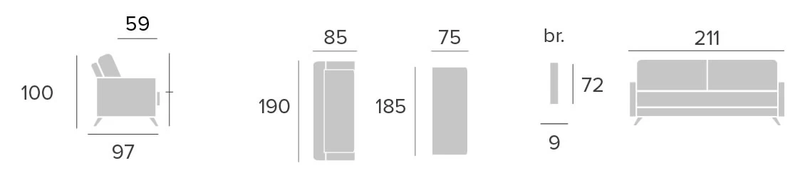 - Mecanismo: sistema nido , fabricado en tubo de acero, pintado en aleación de aluminio, con malla electrosoldada perimetrada en muelle.